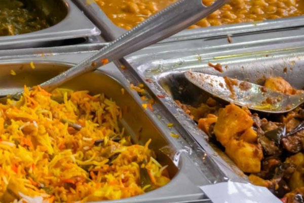 Chicken Balti & vegetable curry. Salmon tandoori filets on a bed of lightly spiced puy lentils. Spinach, pumpkin butter bean curry. Tarka dhal. Channa. Spinach bhaji. Pilau rice. Naan bread. Salad Riata Mango chutney.